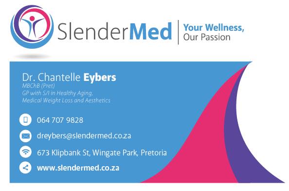 Dr. Chantelle Eybers has a keen interest in healthy living and aims to quide you to take control of your own health. Combining conventional medicine with lifestyle interventions like dietary advice, genetic DNA testing, bio-identical hormone balancing, nutraceutical recommendations as well as aesthetic procedures, at SlenderMed we will assist you towards optimal health and improve your quality of life. “Your Wellness, Our Passion”